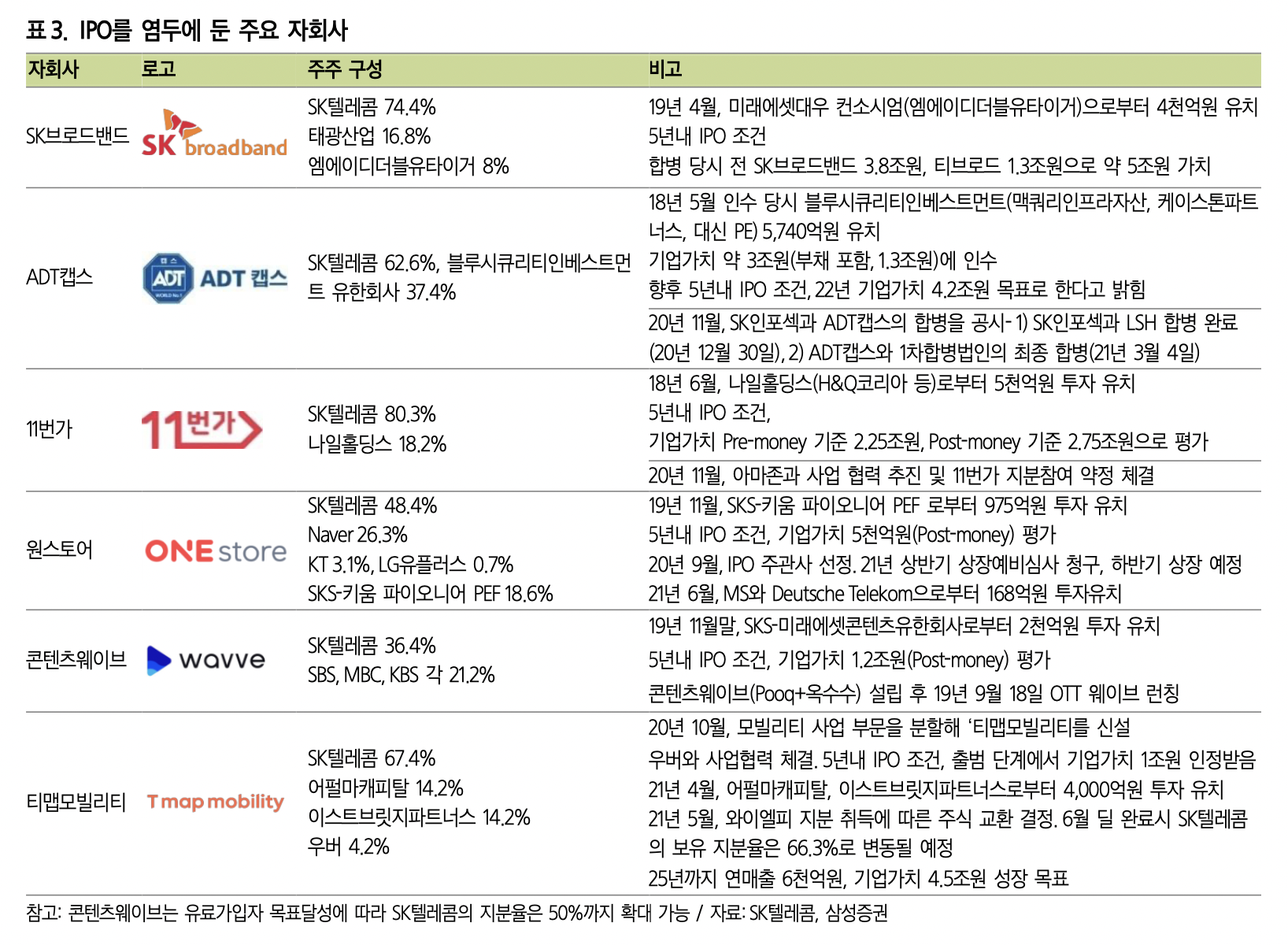 신설법인 대표는 현 SK텔레콤 대표이사 겸 SK하이닉스 부회장인 박정호 CEO가 맡을 예정. 성장 잠재력이 큰 업체들로 구성된 신설법인 ‘SKT 신설투자’는 SK하이닉스 와 인크로스를 제외하고는 비상장사이고 대체로 성장 초입에 있는 만큼 향후 성과를 시장에 입증해야 할 필요가 있다. 원스토어, ADT캡스, 11번가, 티맵모빌리티 등의 자회사는 상장을 염두에 두고 있고 국내외 업체와 전략적 제휴 등의 성과 및 성장 속도에 따라 기업 가치의 re-rating 정도가 달라질 수 있다.