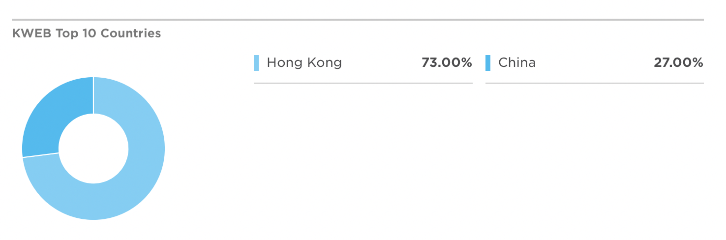 - KWEB ETF 구성 국가는 홍콩 73%, 중국 27%로 되어 있는데, 중국기업 100%라고 보면 되겠다.