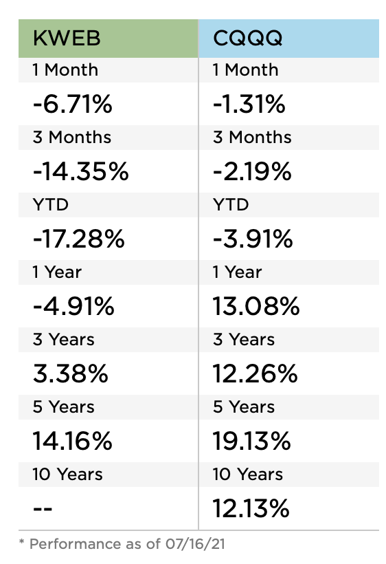 중국 기술주가 꾸준히 우상향 한다는 믿음이 있다면 투자하기에 좋겠다. 다만, 수익률 측면으로 봤을 때 KWEB보다는 CQQQ 가 월등히 더 높은 수익률을 보인다.
