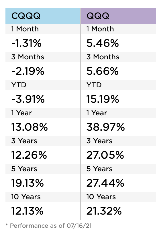 CQQQ와 QQQ를 비교하자면, 이번에는 QQQ의 압승이다.. 지금까지의 트렌드가 계속된다고 가정할 때, 기술주 자체에 투자하고 싶다면 미국 나스닥100에 집중하는 것이 좋겠으나, 이마저도 국가별로 분산하고 싶다면 CQQQ를 함께 가져가는 정도가 좋지 않을까 싶다.