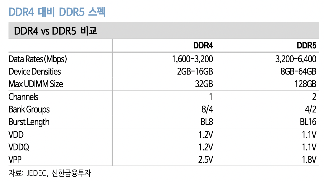 4Q21부터 DDR5 전환 본격화 (신한금투)