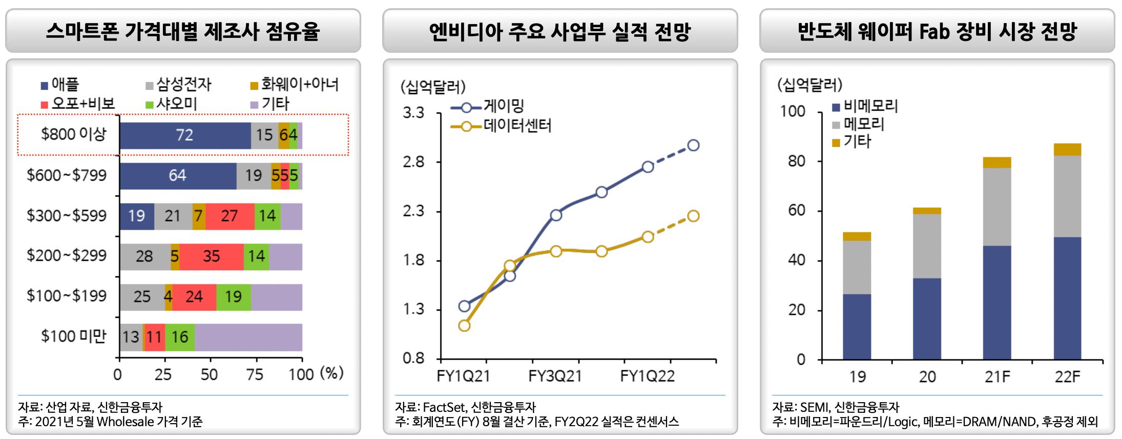 애플: 아이폰12 흥행 장기화. 하반기 출시 아이폰13 생산량 9천만대로 20% 상향. 매출액 기준 글로벌 점유율 42%