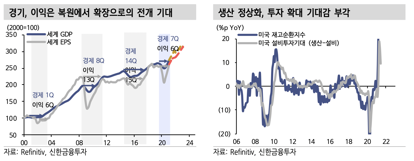 1) 하반기 소비는 비교적 견조한 수준을 유지, 2) 공급 불균형의 우려는 해소 과정, 3) 주요국 재정 정책과 풍부한 기업 현금은 투자 확대를 주도할 동인