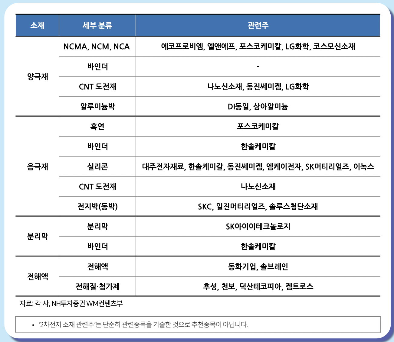 - 향후 양극재에 이어 음극재 개발 속도가 탄력을 받을 것으로 예상
